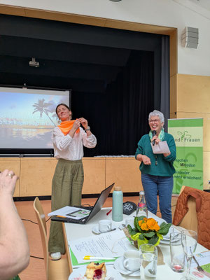 Der KreislandFrauen-Verband Schwäbisch Gmünd hatte am 22. März zur Abschlußveranstaltung der Mitgliederkampagne „ICH bin LandFrau DU auch?“ in die Kulturhalle nach Spraitbach eingeladen. Eine große Gruppe des Ortsvereins Großdeinbach war der Einladung gefolgt. Die Kreisvorsitzende Doris Kurz und Kreisgeschäftsführerin Gabi Müller begrüßten alle LandFrauen beim Sektempfang sehr herzlich. Bürgermeister Johannes Schurr ging in seinem Grußwort auf den Mehrwert der Vereine im Ort ein und hob besonders die Aktivitäten der LandFrauen hervor. Rita Mager die Sprecherin des Kreisfrauenrats Ostalb und des Vereins „Frauen helfen Frauen“ stellte die Arbeit beider Organisationen vor. Die Aufgaben der LandFrauen im Landesverband, den Kreisverbänden und den Ortsvereinen reichen von der Förderung der ländlichen Entwicklung über Bildungsangebote bis hin zur Unterstützung von Frauen in verschiedenen Lebensbereichen. Yvonne Schau, Bildungsreferentin beim Landesverband der LandFrauen Württemberg Baden, gab in ihrer Präsentation wertvolle Einblicke in die verschiedenen Aufgaben und Verantwortlichkeiten der LandFrauen auf den unterschiedlichen Ebenen. Bei Kaffee und Kuchen war Zeit miteinander ins Gespräch zu kommen.