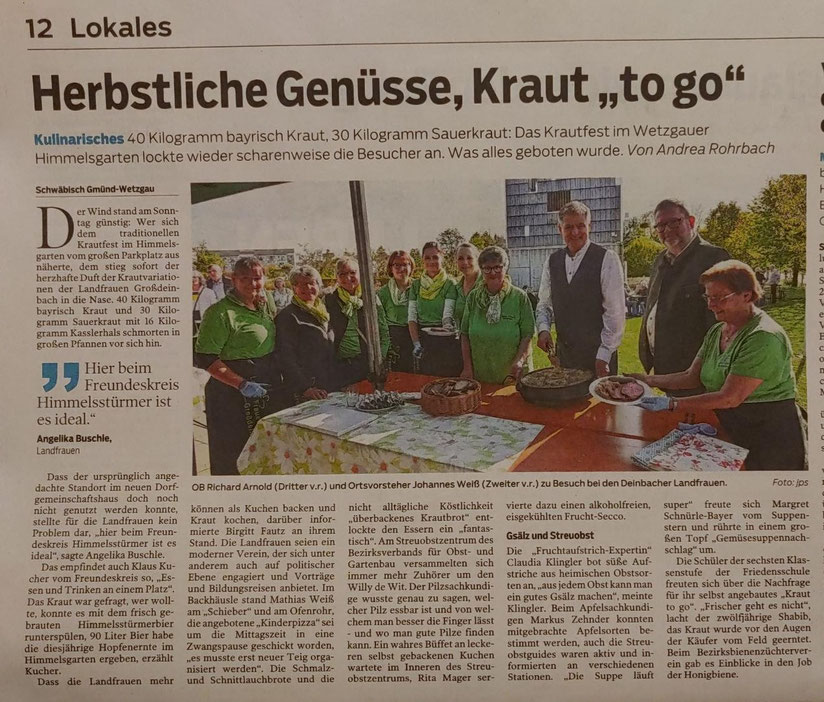 Das beliebte Krautfest im Himmelsgarten lockte bei wunderbarem Wetter mit Aktionen und herbstlichen Genüssen viele Besucher nach Wetzgau. Am diesjährigen Standort, beim Vereinsheim