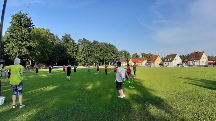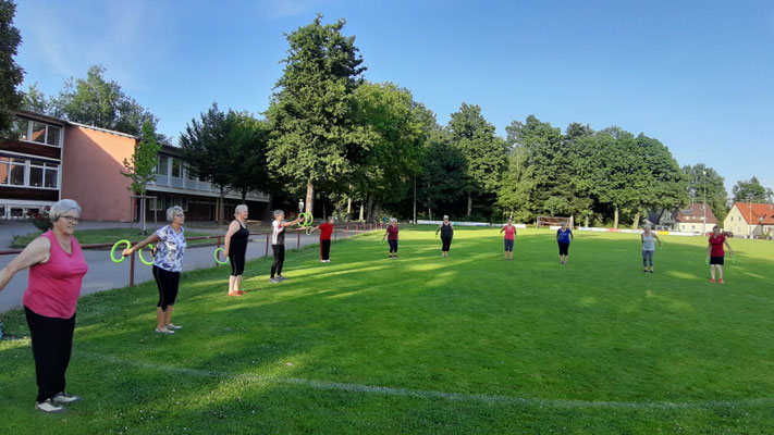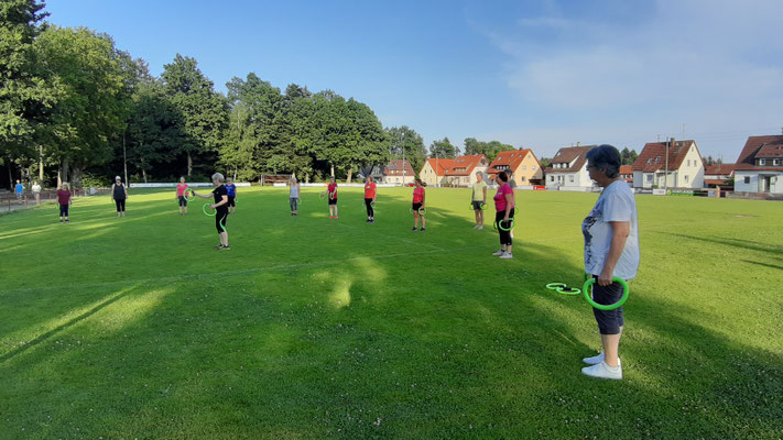Und Schwung – und Schwung, soll schallte es an diesem schönen Sommerabend über den Sportplatz in Großdeinbach. Nein nicht die Fußballer waren aktiv sondern die LandFrauen.