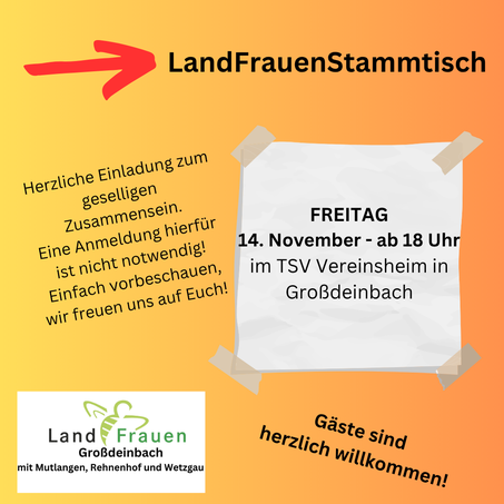 Wer an einem Verkaufstisch interessiert ist, melde sich bitte bis zum 17.10.2025 per Mail unter: landfrauen-grossdeinbach@gmx.de