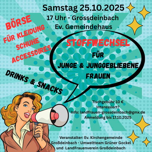 Veranstaltet wird die Börse vom Umweltteam Grüner Gockel der Ev. Kirchengemeinde Großdeinbach und dem LandFrauenverein Großdeinbach.